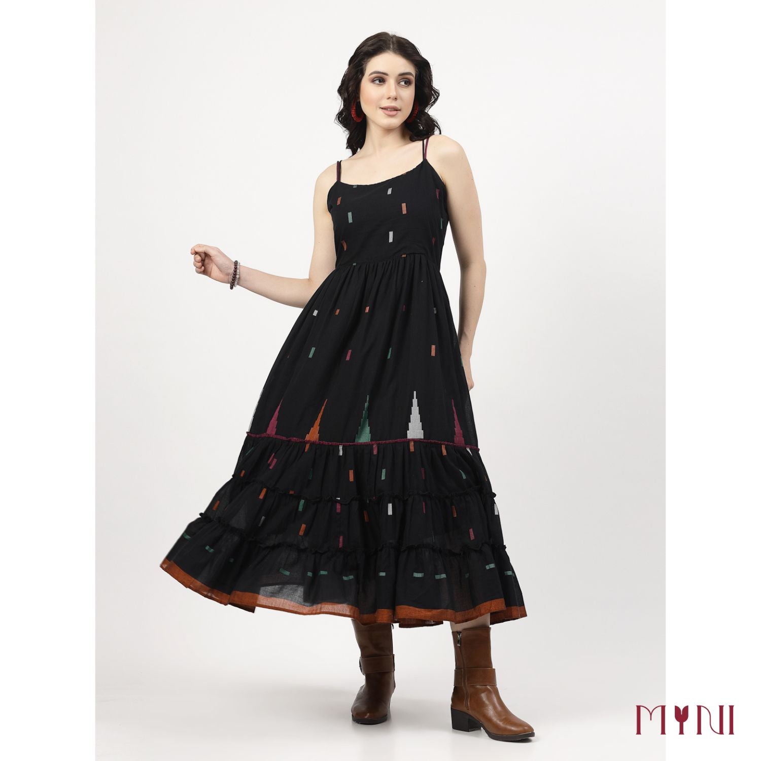 Embrace effortless sophistication with Black Ikat Work Tiered Dresss, a statement piece that combines timeless black. This dress offers a flattering, versatile silhouette enhanced by delicate layers and artistic prints, making it perfect for both casual outings and semi-formal occasions. Whether you're attending a garden party, a weekend brunch, or a chic evening gathering, this dress ensures you stand out with grace and confidence.
