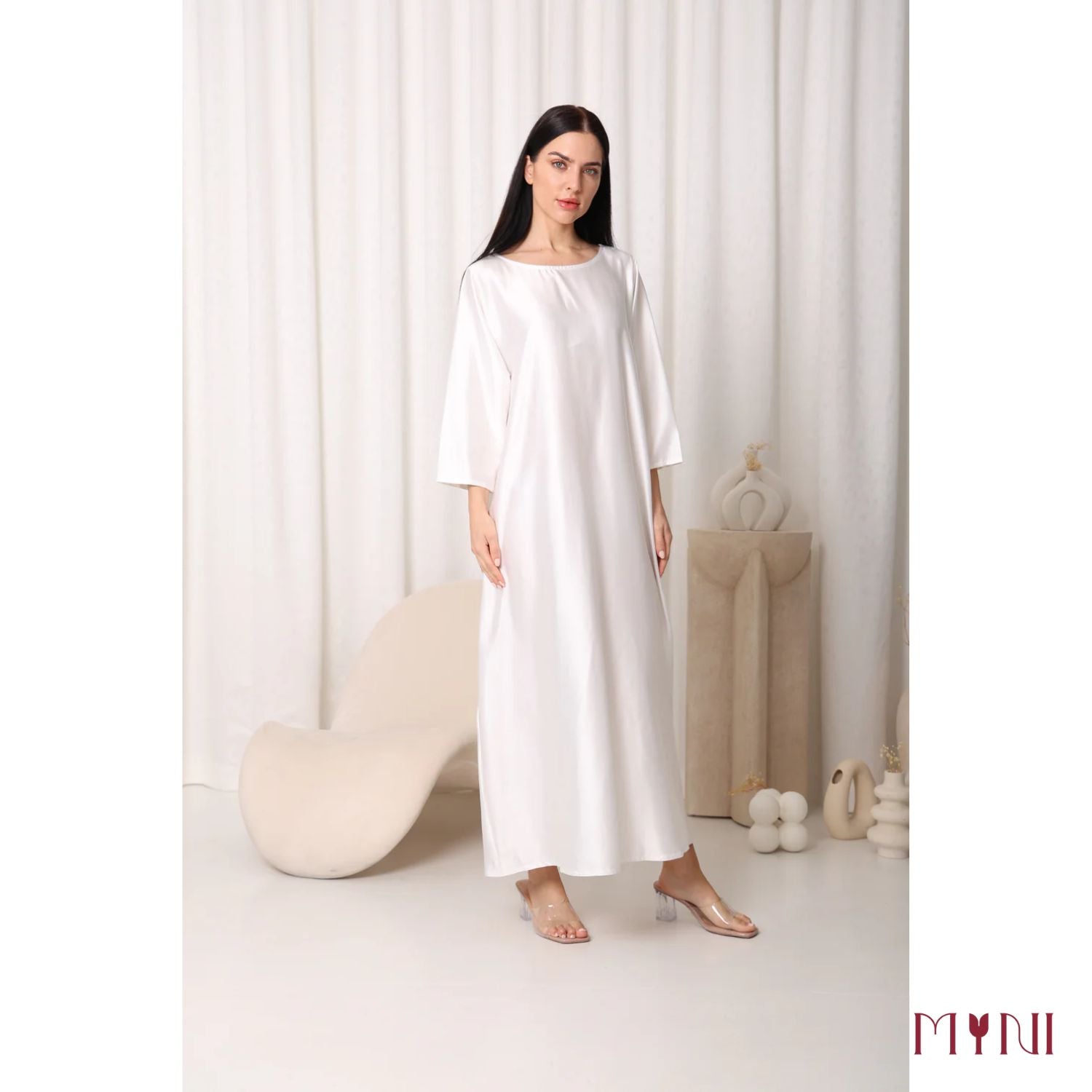 Turn heads in this stunning white satin maxi dress, designed for effortless elegance and timeless charm. Featuring a luxurious satin finish, this dress drapes beautifully over your silhouette, offering a sleek and sophisticated look. The full sleeves add a touch of grace, while the flowing maxi-length hemline enhances its ethereal appeal. Perfect for evening events, formal occasions, or special celebrations, this dress ensures you make a lasting impression.
